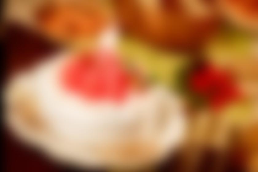 苺は100均で買ったイミテーションです✨上にルースパウダーを粉砂糖みたいにふってるんですよ〜笑